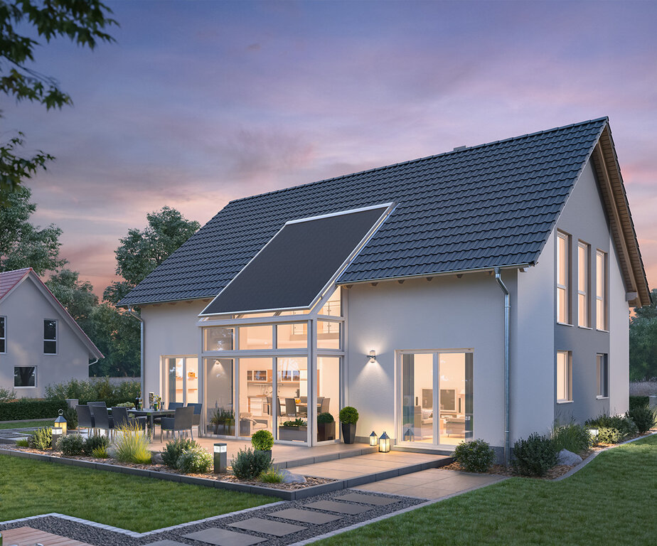 Der Wintergarten ist ein zusätzlicher Wohnraum mitten in der Natur. Hier sitzt man hinter großen Glasflächen mit der Familie und Freunden im Grünen und ist rundum optimal geschützt vor Wind und Wetter. Damit Sie hier zu jeder Jahreszeit die gemeinsamen Stunden bei einem angenehmen Raumklima genießen können, ist aus unserer Sicht die Kombination von klassischer Wintergarten-Markise, senkrechten Außenjalousien und maßgeschneiderten Schrägraffstoren im Giebel die perfekte Lösung.